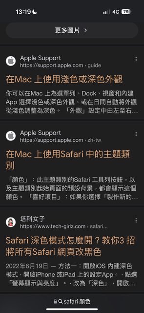有人的safari搜尋結果的字體顏色變橘色嗎?