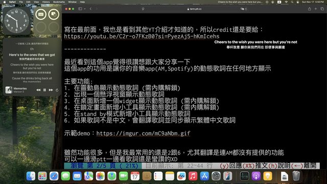 推 Subscript9: macOS本來就有免費的LyricX了 11/17 19:49