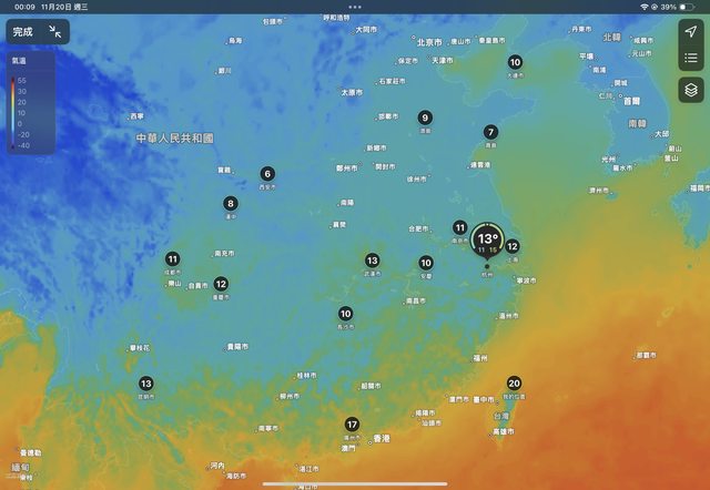 我想找的是類似蘋果的天氣app這樣,可以在地圖上顯示自訂城市的溫度的app。