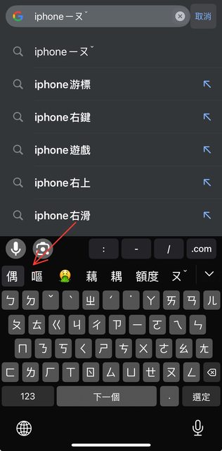 可能是老問題,但一直無法利用關鍵字找到解答,常常打字在中英切換後 會有拼音無法連續的問題,例如圖中 我想輸入「iPhone有」,這個「ㄧ」就自動與「ㄡ」分開,導致無法選到「有」,而變成「偶」。