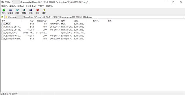 : 備2:如果打開最大的.dmg是出現這樣的畫面,那請先更新7zip (至少要22.00以上)