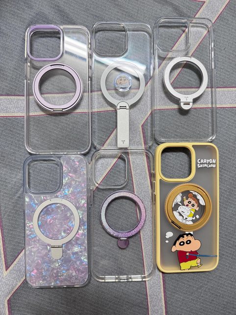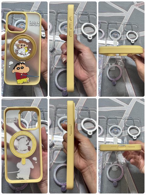 7.ROCK蠟筆小新正版支架手機殼(69RMB),這個手感超級好的,支架旋轉會有聲音(跟anker一樣旋轉裡面也會跟著轉),膚感材質,但是用久一定會髒,16系列的顏色比較好看,15系列只有黃色跟灰色可以選。
