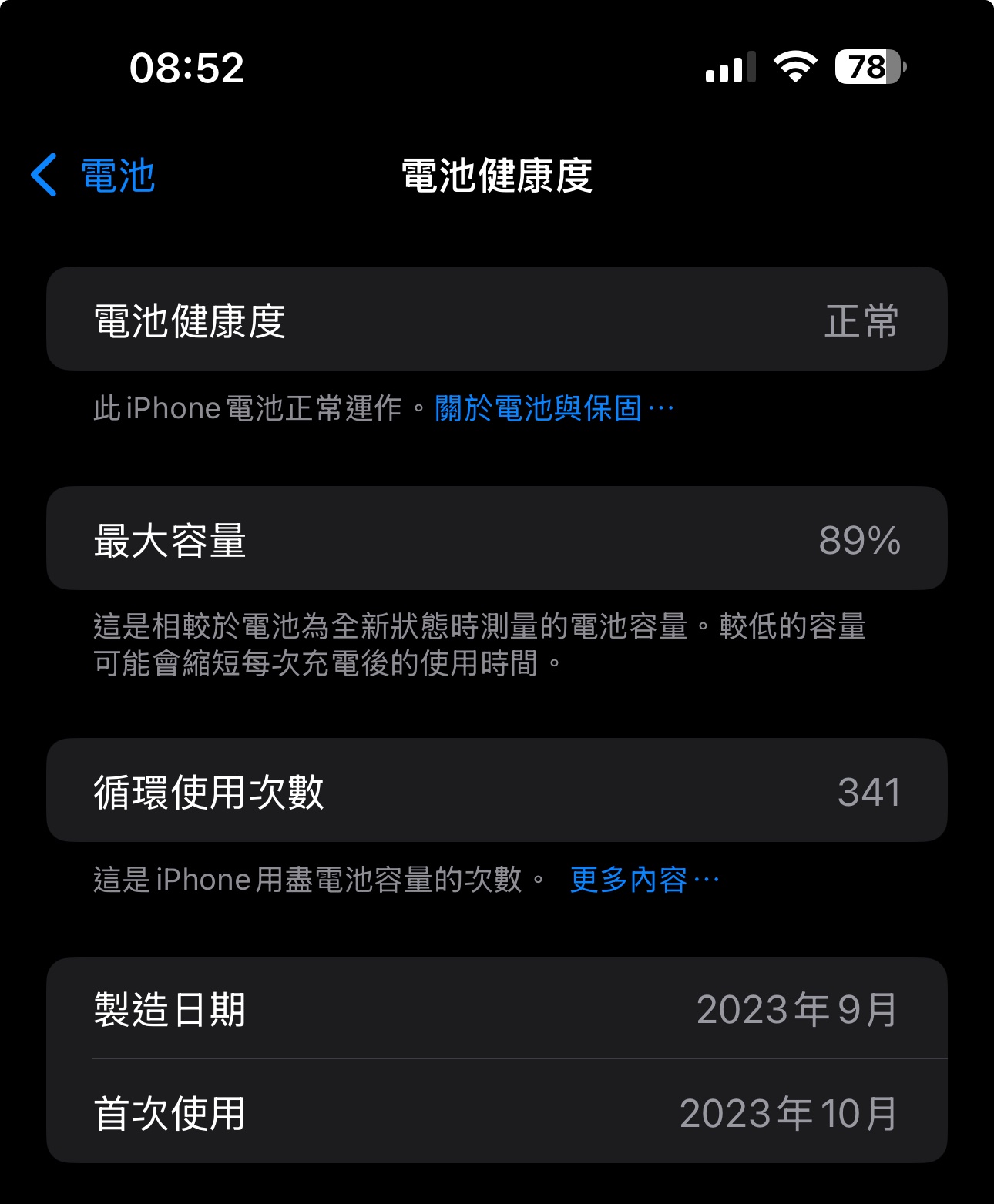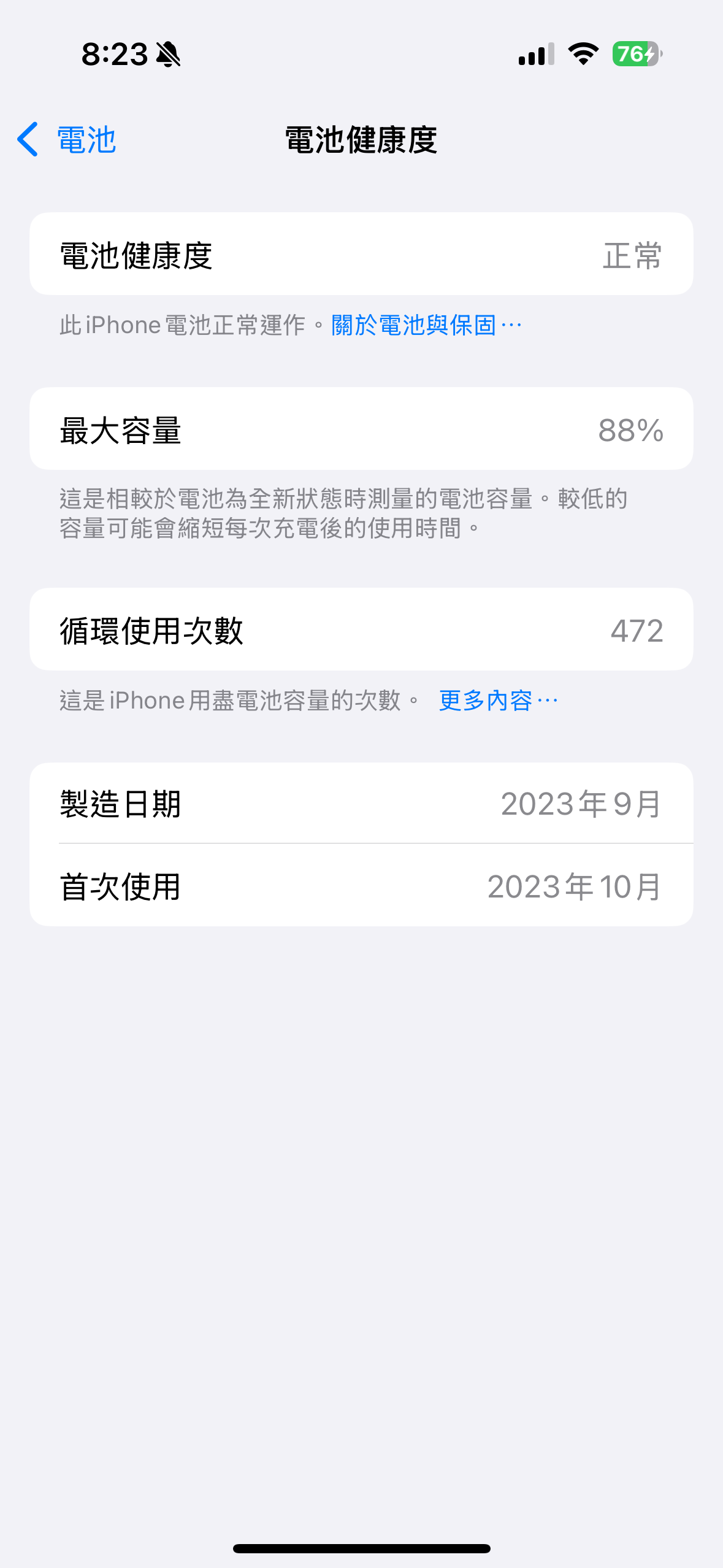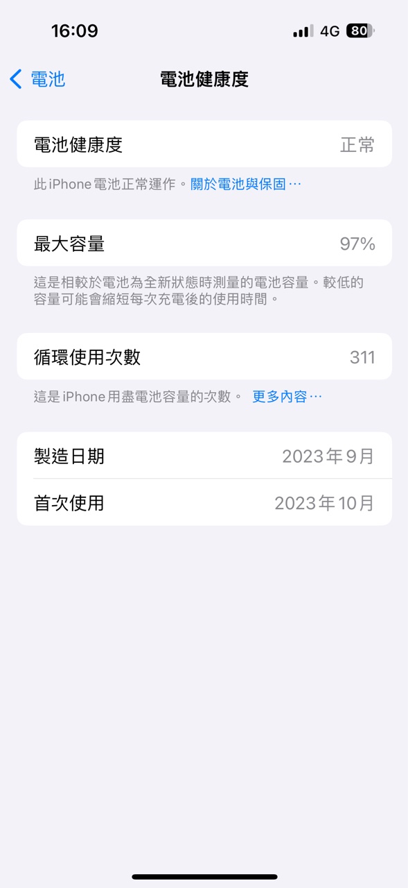 推 m5092626: 我當初沒換15PM之前用11 20年2月用到23年11月 電池健康 12/29 15:03