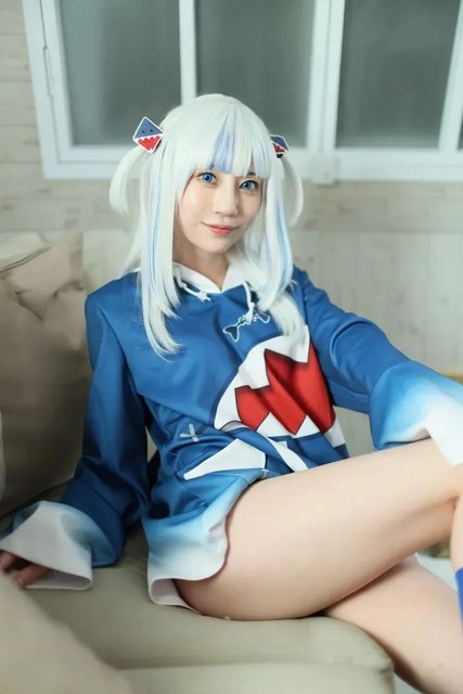 七澤米亞喜歡變裝,來台打扮成虛擬YouTuber噶嗚古拉。鄭孟晃攝