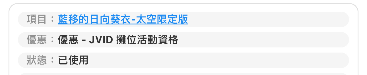 → aquamouse: 給工作人員掃就可以 JVID券的要先顯示序號去JVID兌換 01/28 17:54