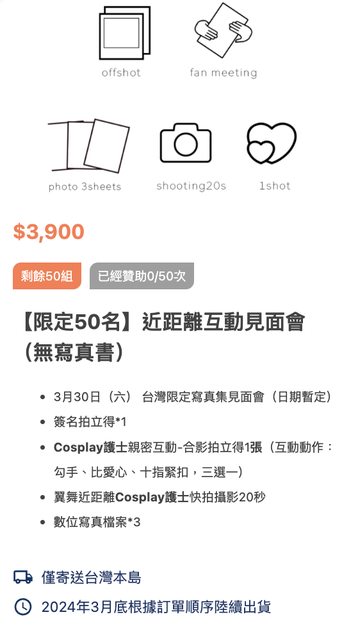 → makisuki: 其實應該募資結束了,硬要推一個沒寫真集的閹割版見面會03/01 18:36