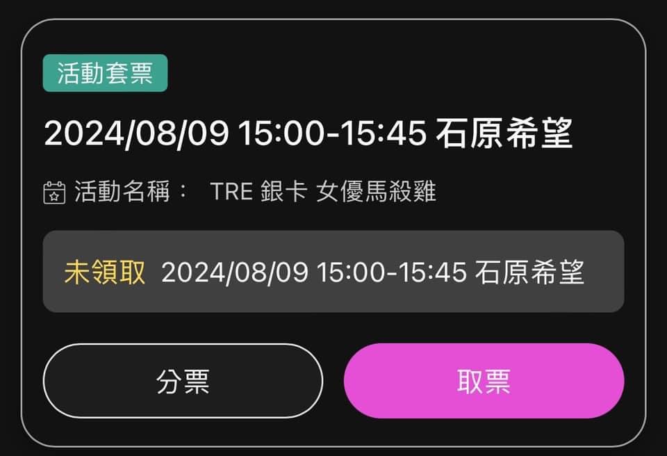 推 bearKQG: 沒錯 要取票才能預約 07/25 10:40