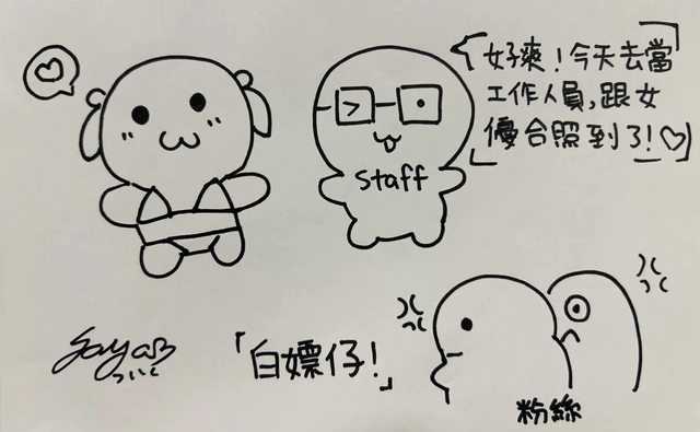 然後你今天終於當工作人員很開心上傳了當女優的合照,可能就會開始被噓白嫖仔….