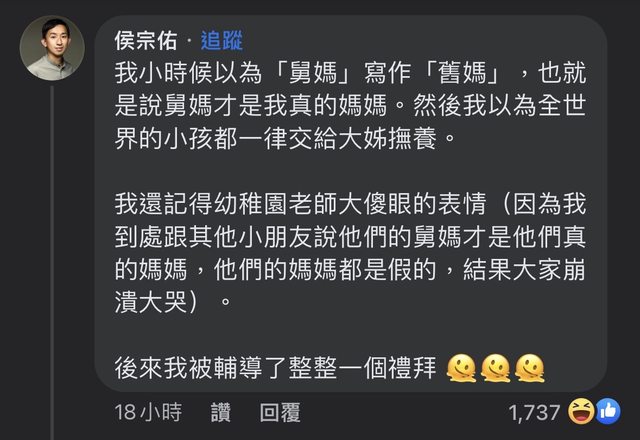 推 cynthiachen: 不一定要會認字才會搞錯…他只要以為舅舅的舅,是新 06/02 13:41