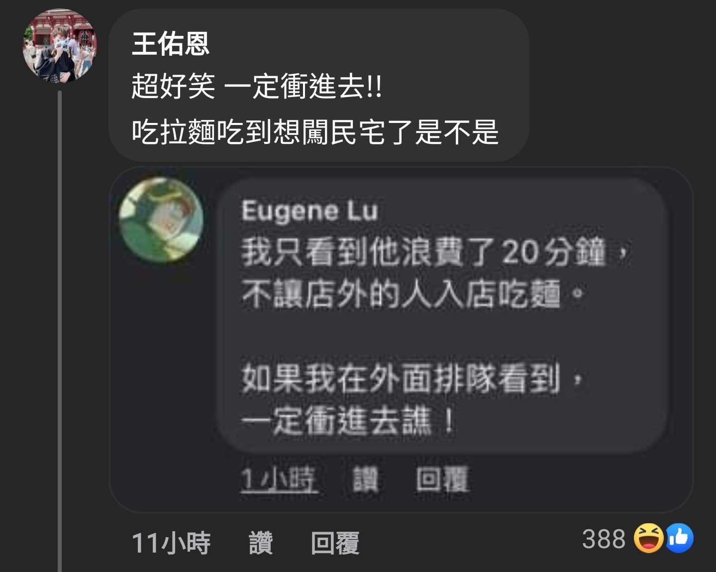 → revon: 偷個人FB內容去 拉麵同好會 指責,沒話題聊了嗎? 06/28 14:42