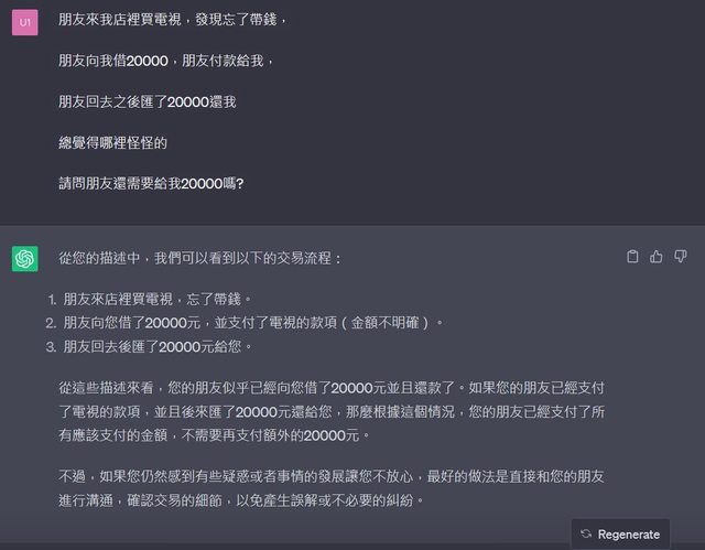 推 creep92593: 簡單說朋友20000付了兩次,如果只付一次才是有問題 08/20 22:58