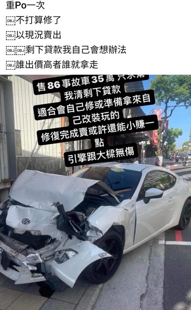 → fluterway: 車撞爛了,貸款還沒還完...223.138.174.166 08/29 18:45