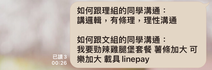 推 zeon19841102: 文組聽一次就懂的東西,理組講幾次都聽不懂 10/15 11:15