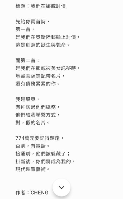 標題[XD] 現代詩:我們在挪威討債