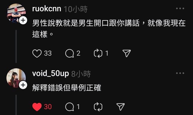 推 gmt945: [男性說教]解釋錯誤,[我現在這樣]舉例正確XD 06/30 09:10