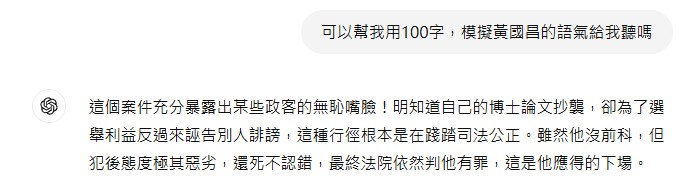 → raidcrash: 黃國昌最好笑XD GPT看起來還沒學到柯的 1.162.169.231 08/21 15:17