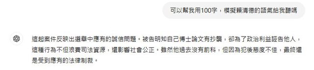 推 teke: GPT擺明不想模倣阿館,連三字都出不來 1.200.49.117 08/21 16:34