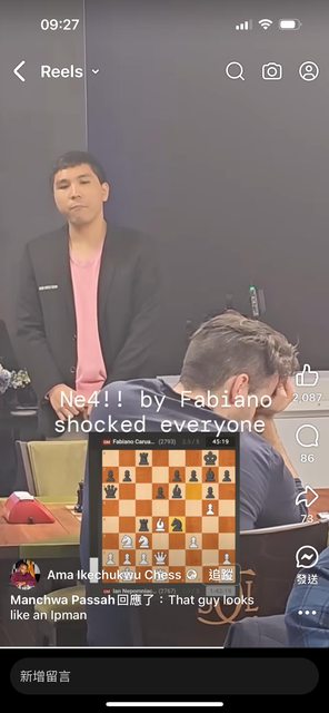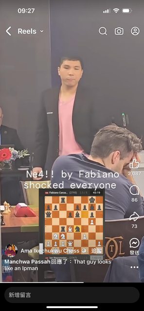 這張截圖的影片本來是在講義大利西洋棋大師Fabiano下出震驚全場的神之一手 讓俄羅斯西