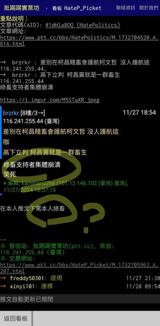 → minoru04: 極端政治廚都是同一種人 顏色不同而已 12/05 19:08