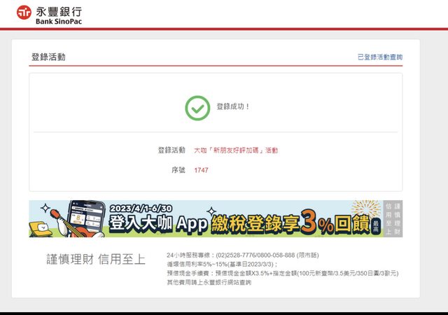 → Sakaemori: 額是不是滿了,客服說會等到活動結束 49.216.174.106 05/19 17:17