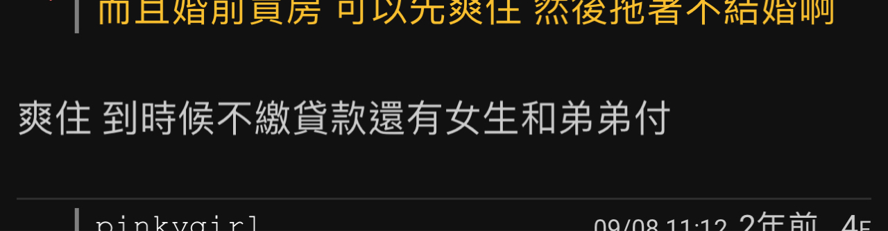 推 skytowerlll : 不少人看到婚前買房婚前財產,就會覺得住免錢正常阿 05/24 09:48