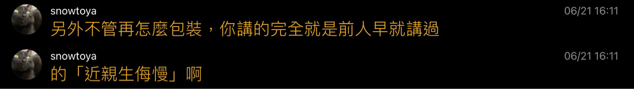 → snowtoya : 的「近親生侮慢」啊 06/21 16:11