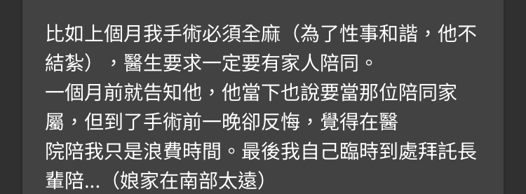 → bluevillage : 後面先生就以公事為由拒絕陪去醫院了 10/26 10:19