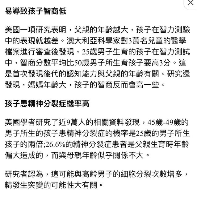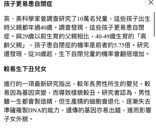 mosquiton : 40歲以上父親容易造成的孩子遺傳問題 高齡母親反而 11/16 11:16