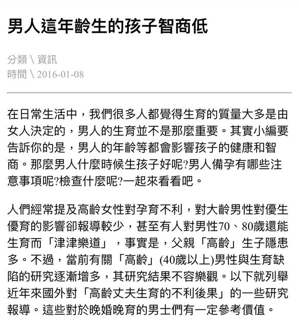 nanalia : 高齡產婦的風險如下..然後貼文章是在講「男人」生育 11/16 06:43