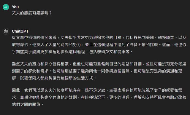 推 VirgilAeneid: 不是先生問題大。而是先生比較能改變。AI認為太太 04/17 06:56