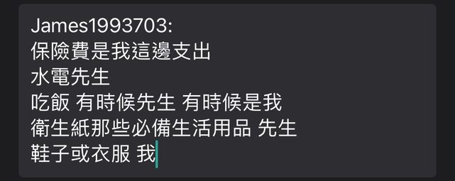 : 所以關於小孩的費用他只付奶粉&尿布