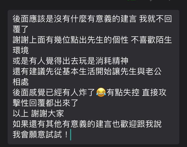→ bbbing : 換成男生想出去玩女生想顧家的也不少05/22 09:58