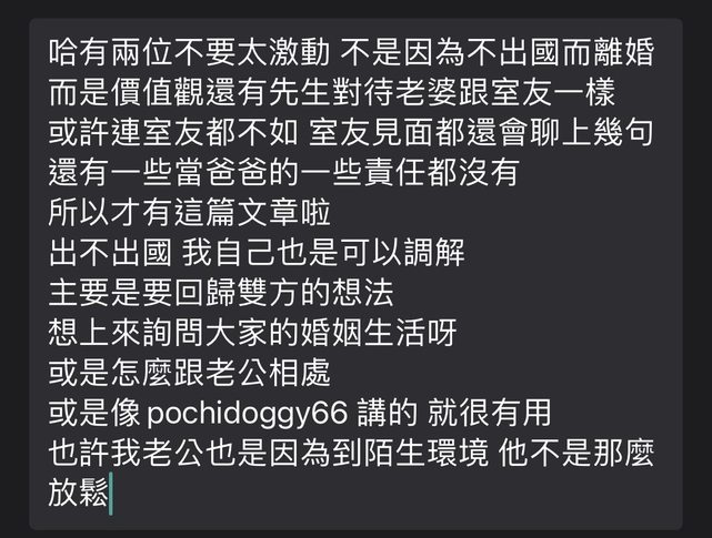 : 還有不是因為出不出國講到離婚
