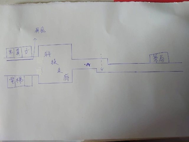 在電梯前看到守衛從圖中虛線位子穿過走廊,第一時間腦袋閃過的想法,有其他通道可走