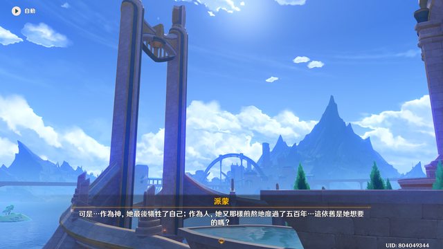 她打算說的話也是要旅行者好好看著,自始至終詮釋著她劇本中的神性。