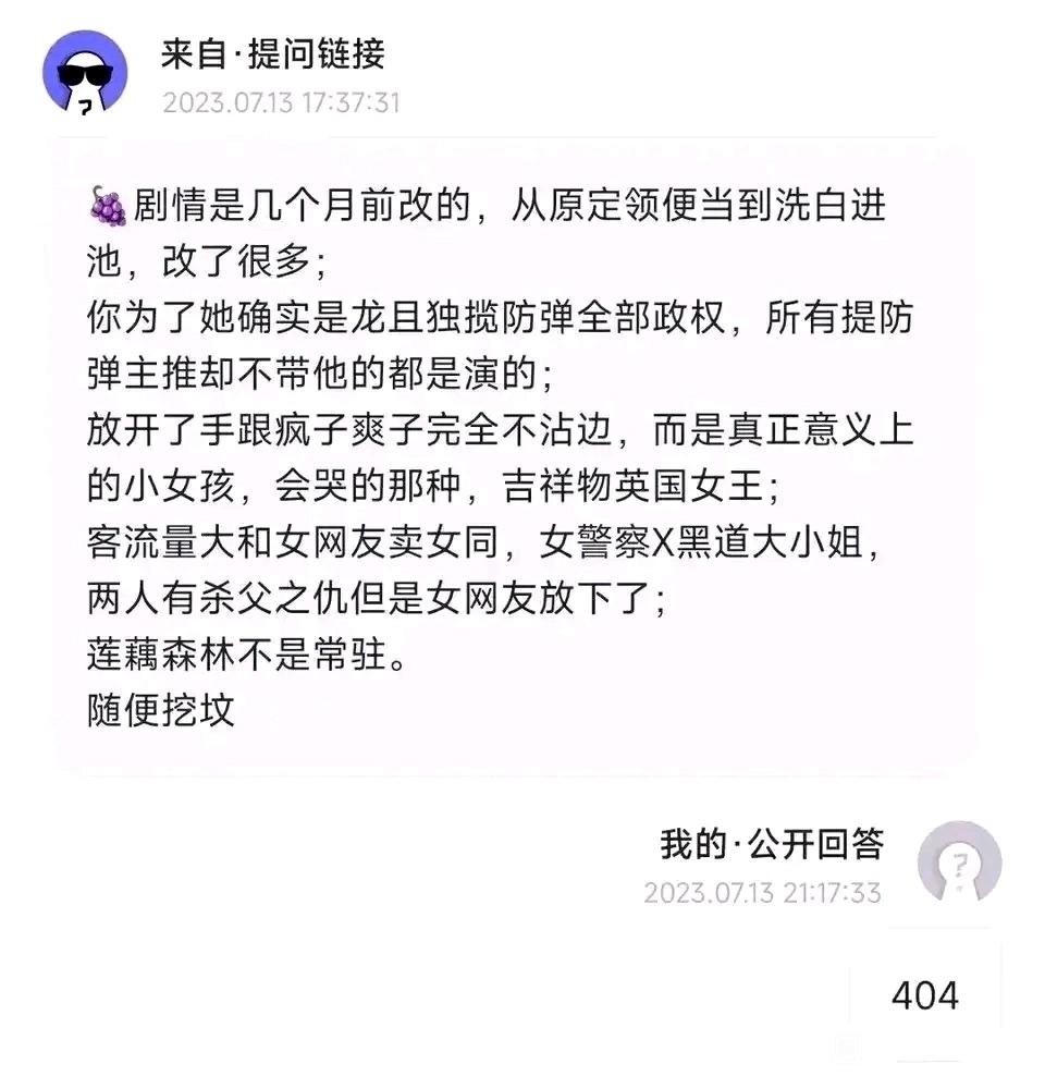 → IrisAyame: 只能從404在7月和9月初爆的劇情料來判斷有大改劇情。 11/18 14:40