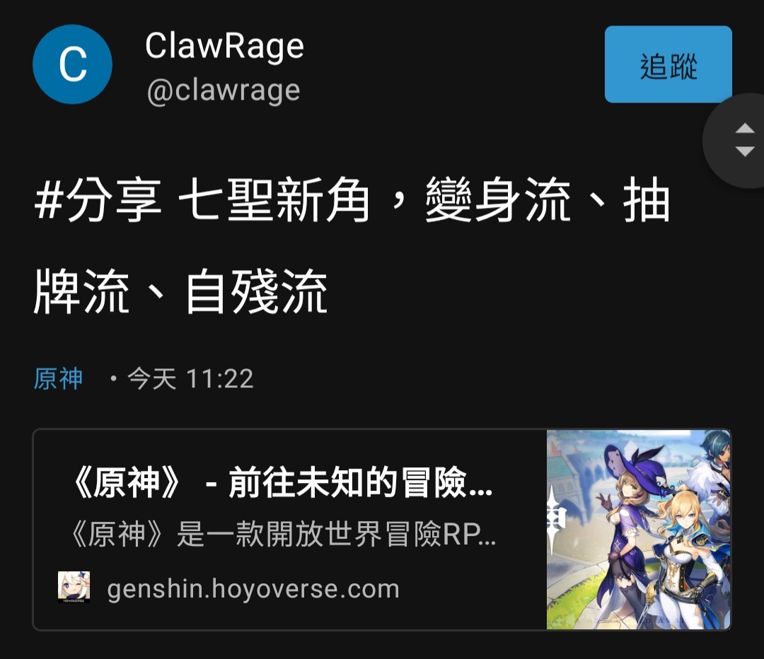 Valter: 推文是不是暴露了很多人都沒在看七聖的更新訊息 12/20 12:16