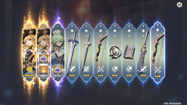嘶——所以是單純十連無保底直接噴出來了 不不不,賽是很賽但也就不過如此吧,既然角色池10抽下班了那就來抽武器池 武器池一定非到哭出來,能把這短暫的興奮感打回現實 這不?十連又十連,鳥槍、霧切,你看已經要吃定軌大保底了 剛剛一時衝動還想買P發錢或者Roll月卡,當自己錢多啊哥 來啦 定軌! https://i.imgur.com/l27pSyV.png