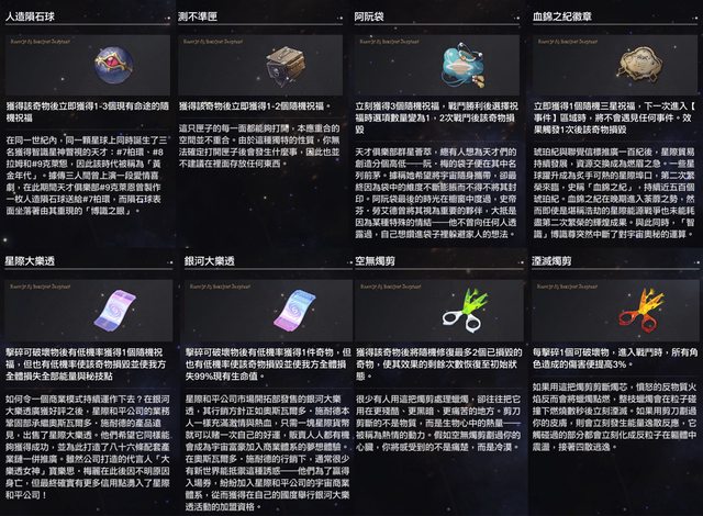 其餘沒有特別提及的奇物不是沒作用,只是更多作用在充數部分給骰面返利10碎