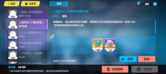 晶×2800補償,請艦長及時登入遊戲前往郵件領取。