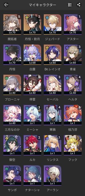 本來就很喜歡艾絲妲和丹恆,所以兩個人等級行跡都會練滿