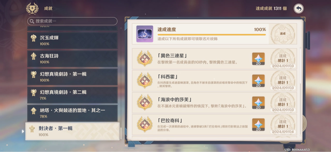 標題[原神] 5.0大世界挑戰成就 (對決者第一輯)