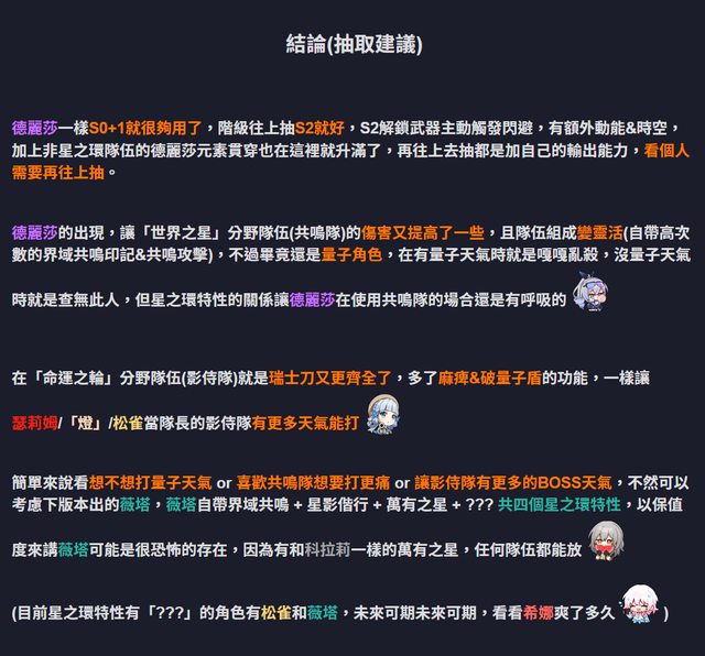 標題[崩壞] 7.7-德麗莎玩法&隊伍流程&比較+抽取建議
