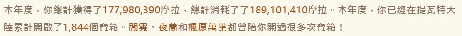 看了回顧才知道我摩拉這一年完全處於入不敷出的狀態