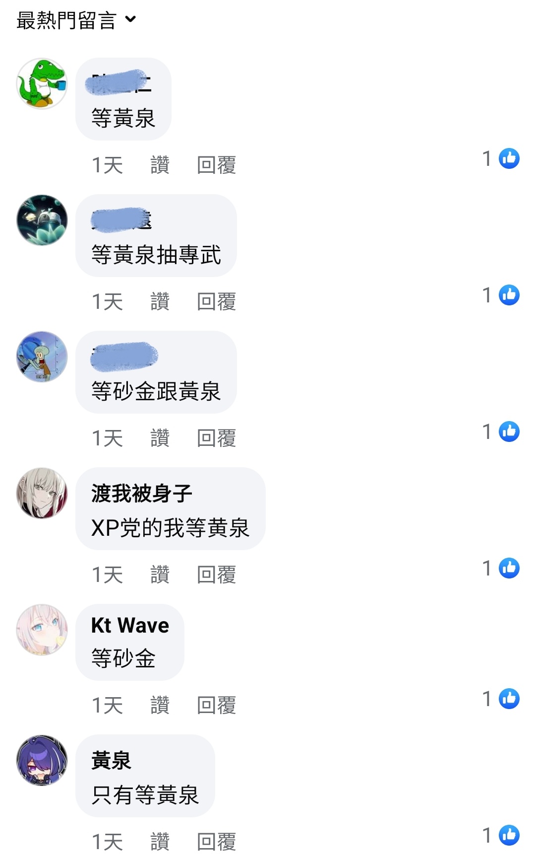 推 CasullCz: 搞不好下半的黃泉 砂金更多人抽 10/25 09:20