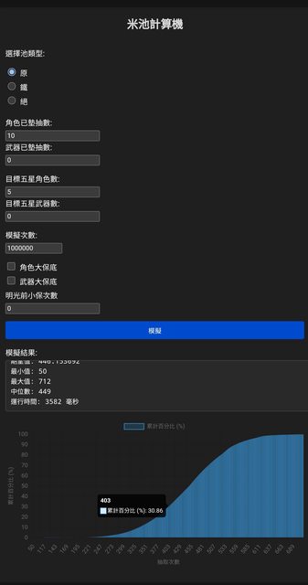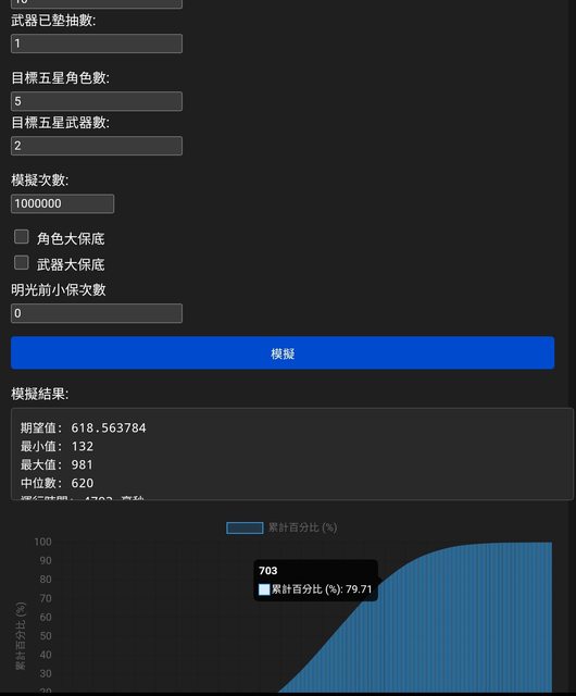 考量到因為是使用客戶端來計算,建議模擬次數不要填太高以免網頁當掉