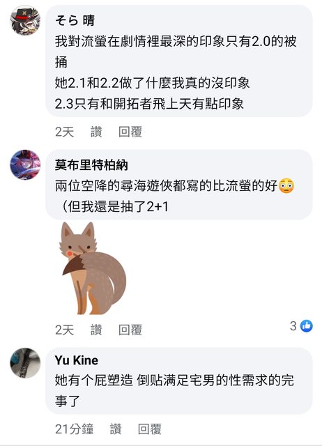 → anri: 有人沒很喜歡流螢滿正常的 劇情真的轉太硬 但她模組真的好可 11/04 08:22
