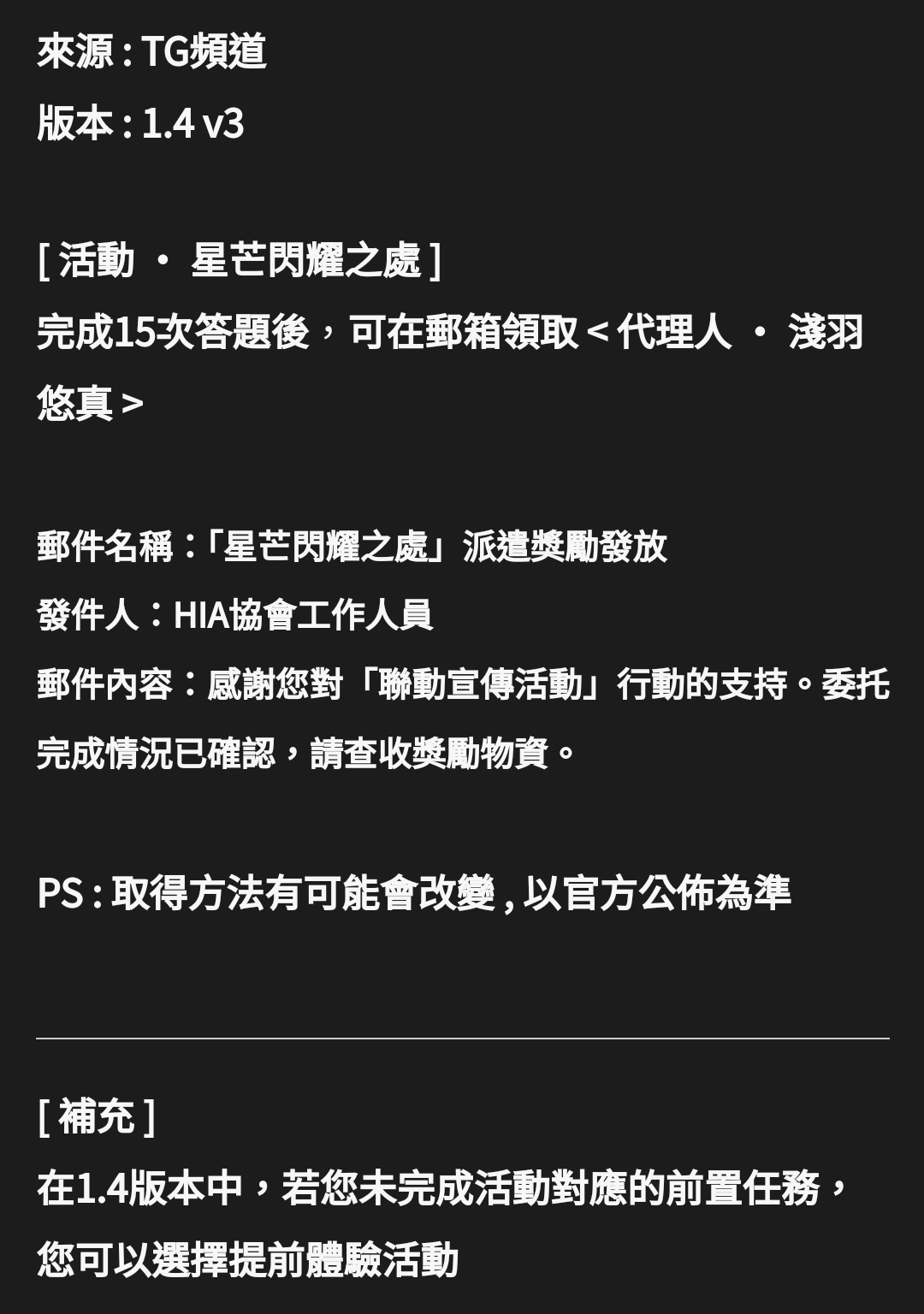 推 tom11725: 是說5.3版本期間會涵蓋在春節內,但目前的內鬼好像都沒 11/16 01:06