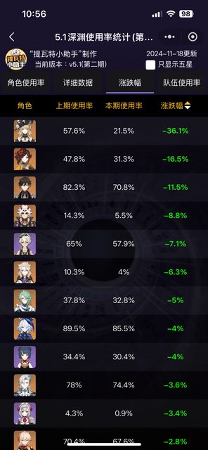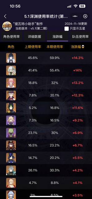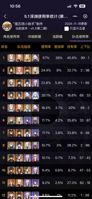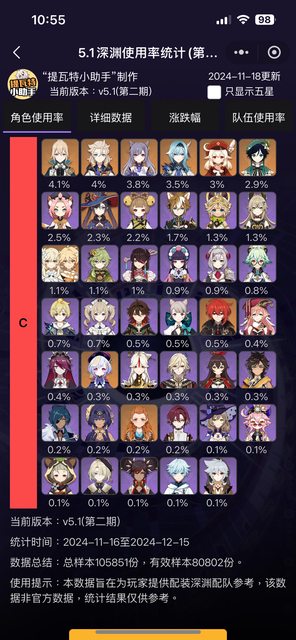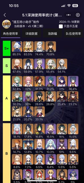 → LeonBolton: 使用率只代表當期深淵最多人用(最通解)的角色 11/18 15:47
