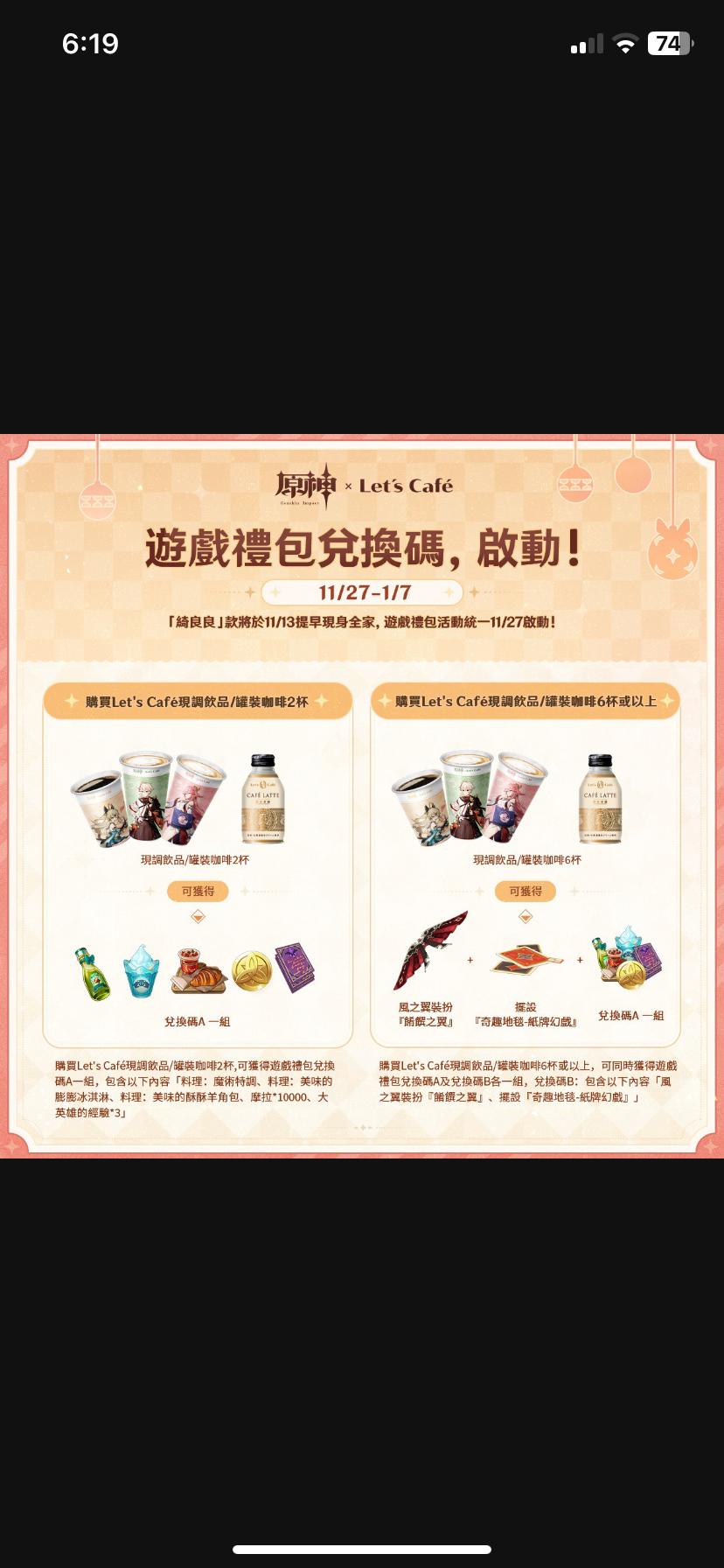 → O300: 上面又沒說品項6個 是咖啡 或罐裝 11/27 18:21
